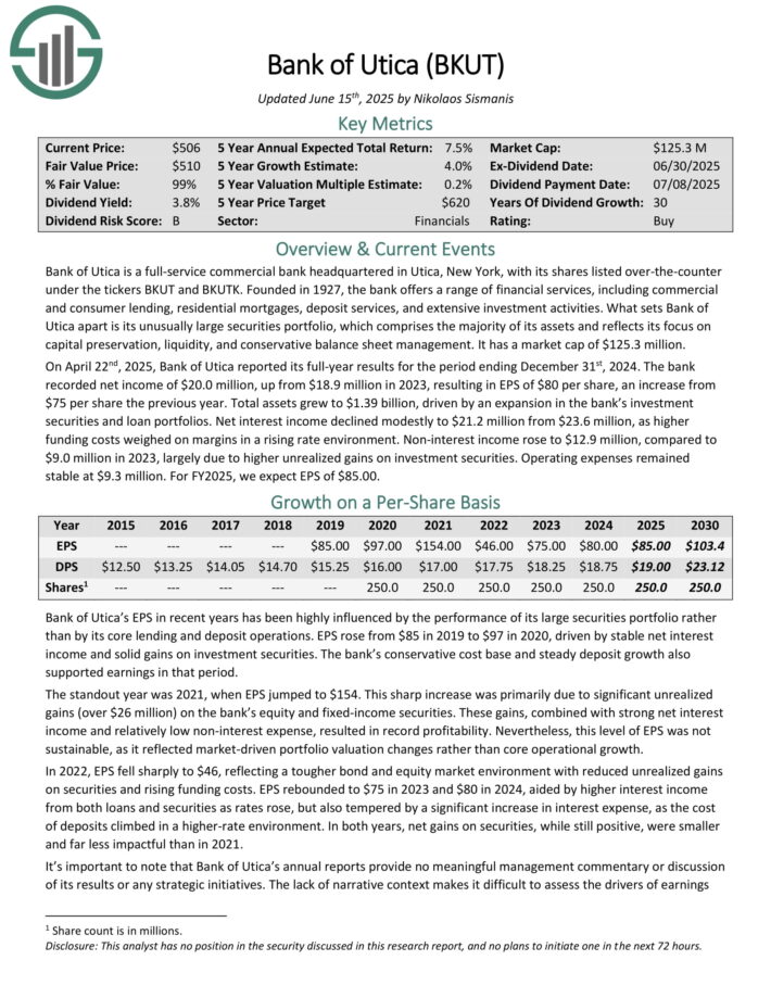 On April twenty second, 2025, Financial institution of Utica reported its full-year outcomes for the interval ending December thirty first, 2024. The financial institution recorded internet earnings of $20.0 million, up from $18.9 million in 2023, leading to EPS of $80 per share, a rise from $75 per share the earlier 12 months.