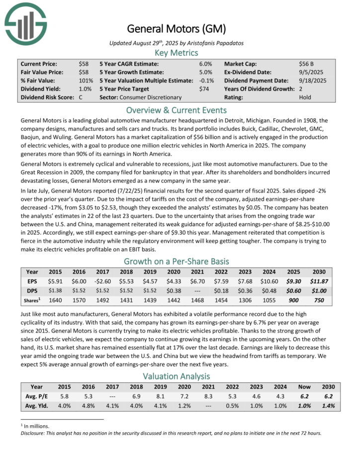 In late July, Normal Motors reported (7/22/25) monetary outcomes for the second quarter of fiscal 2025. Gross sales dipped -2% over the prior 12 months’s quarter. As a result of affect of tariffs on the price of the corporate, adjusted earnings-per-share decreased -17%, from $3.05 to $2.53, although they exceeded the analysts’ estimates by $0.05.