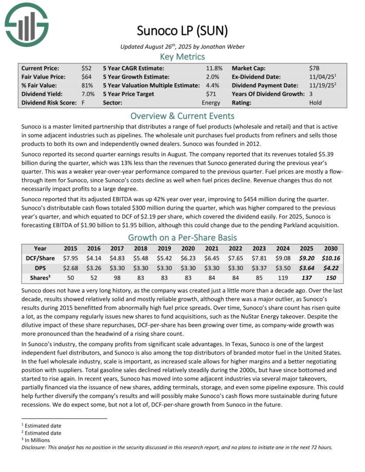 Undervalued Excessive Dividend Inventory #7: Sunoco LP (SUN) – P/E ratio of 5.5